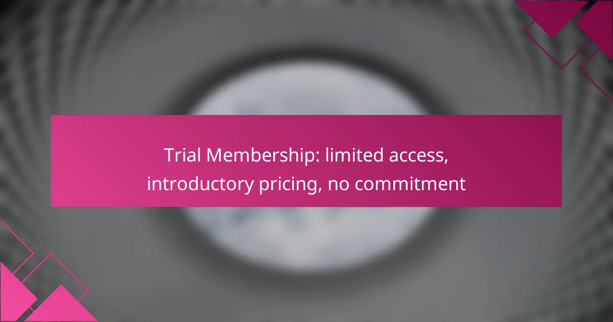A trial membership offers limited access to a service or product at an introductory price, allowing users to explore features without a long-term commitment. Typically, this arrangement lasts for a set period, enabling potential customers to evaluate the offering before deciding to subscribe fully.
